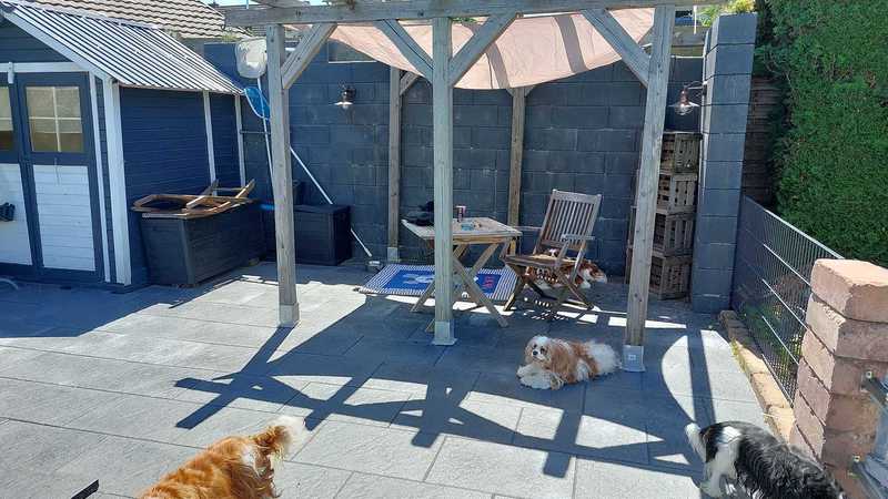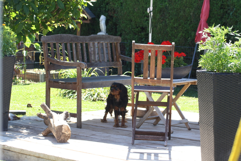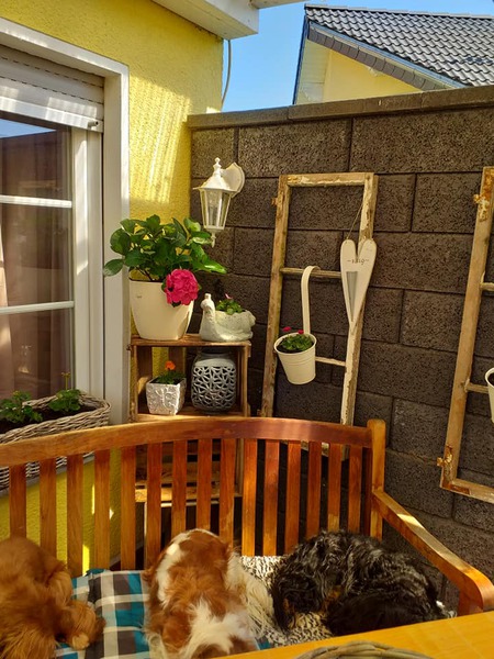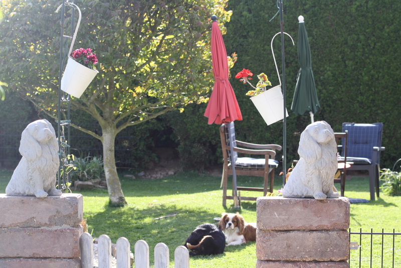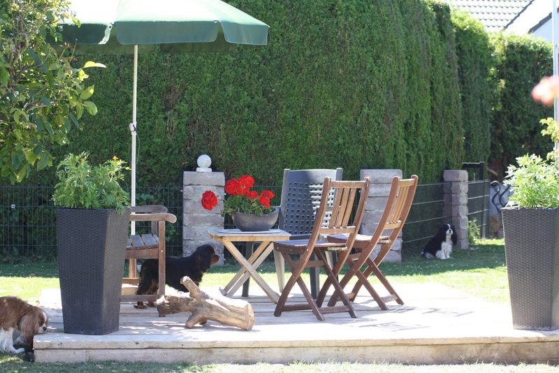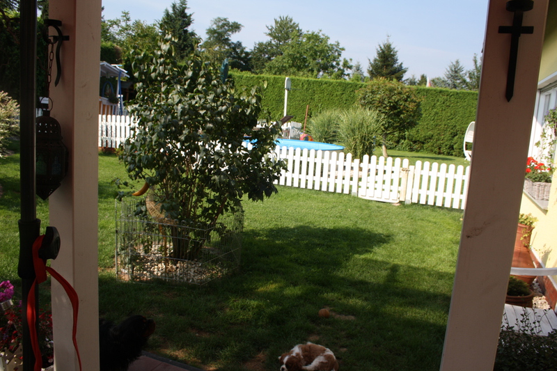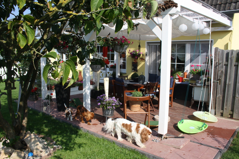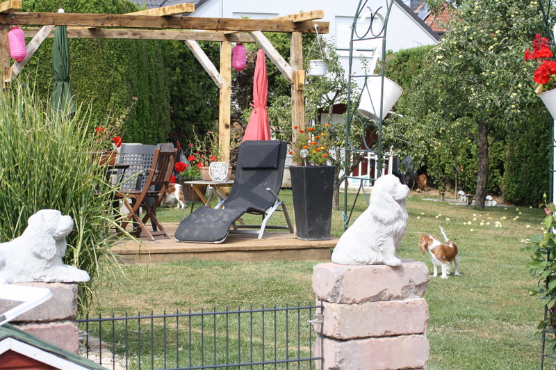 Wir lieben unseren Garten und unsere Cavaliere natürlich auch, da wir nicht in Urlaub fahren können mit allen Hunden , gestalten wir uns den Garten so , das man einen längeren Urlaub auch nicht braucht , sondern das wir uns in unserem Garten sehr wohl fühlen. Einmal im Jahr machen wir eine Städtereise ohne Hunde ,Zeit für uns zwei ganz alleine. Unsere Kinder passen dann auf sie auf.