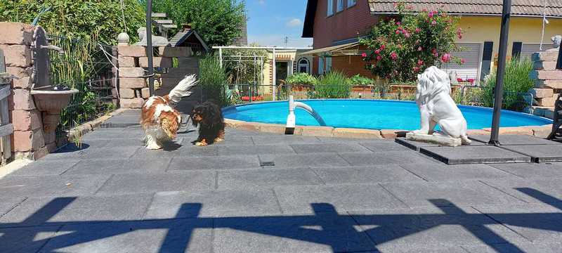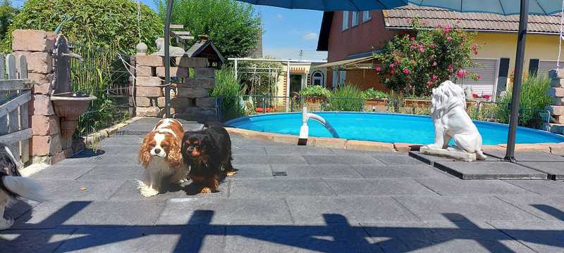Der Pool ist unser Urlaub und einige Cavaliere schwimmen gerne in ihm mit uns.