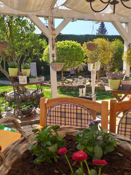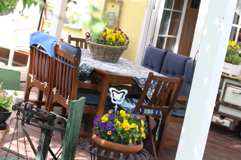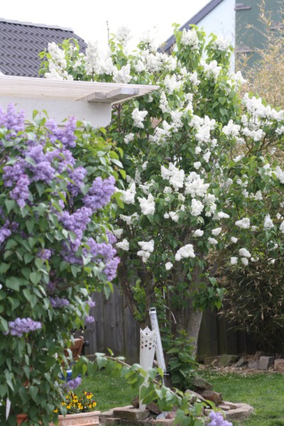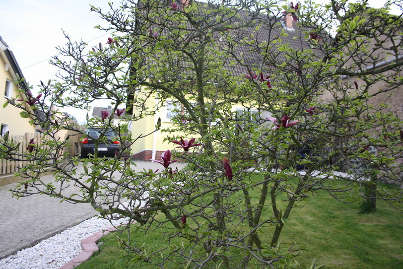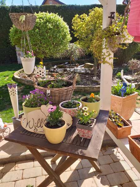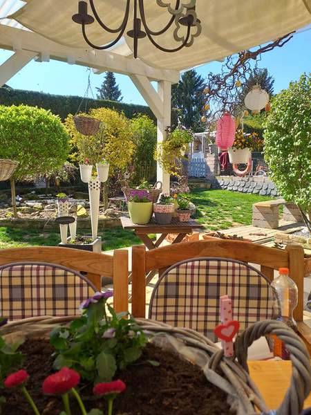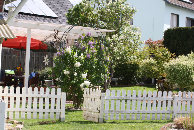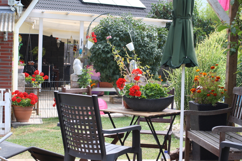 Unsere Blümchen und Bäume die in voller Pracht blühen, die Geranien sind noch nicht soweit. Im Sommer ist unser Garten ein Traum.