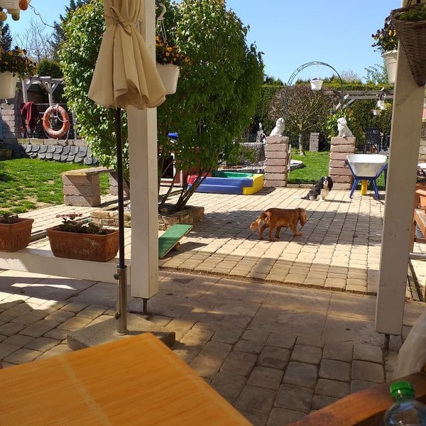 Unsere Hunde genießen es hier zu spielen,toben und im Sommer sich im Pool ab abzukühlen.
