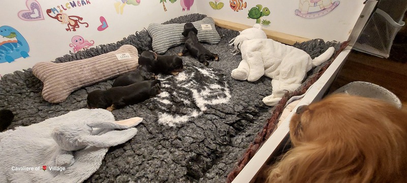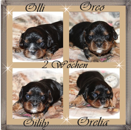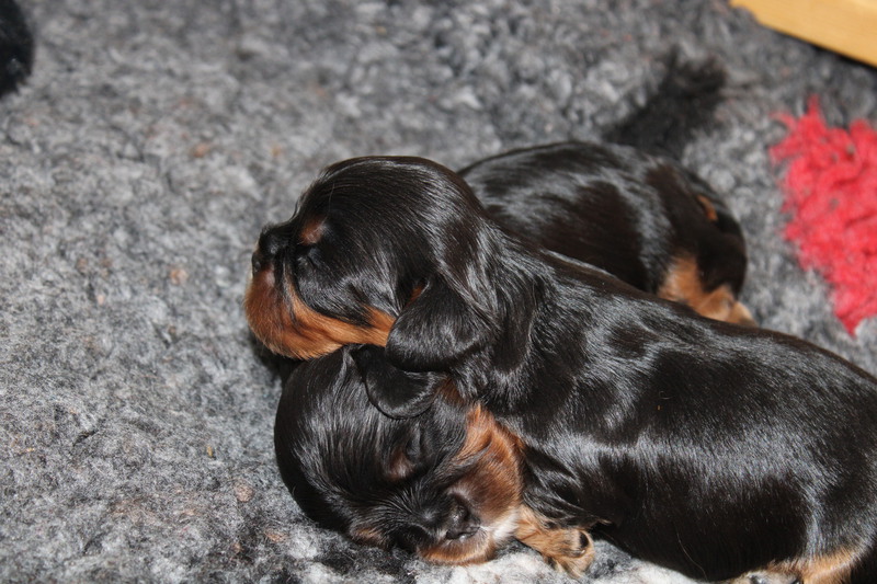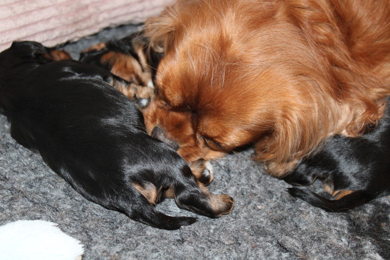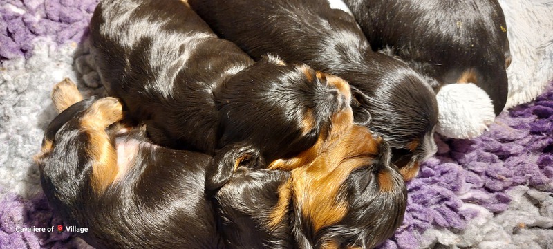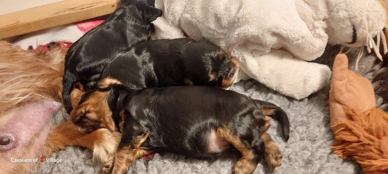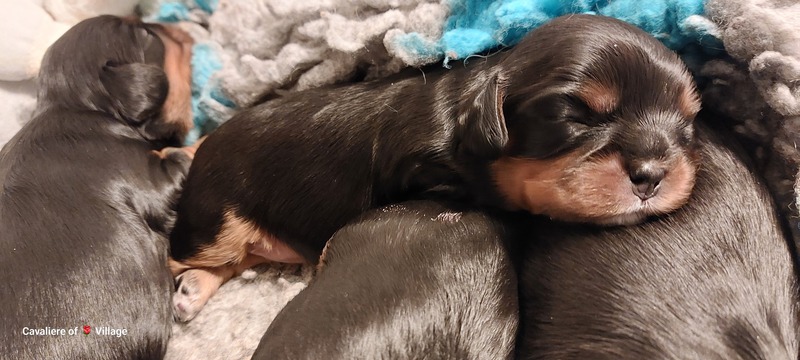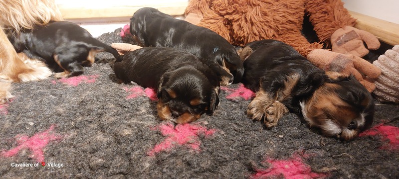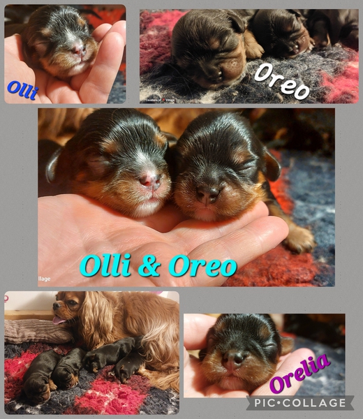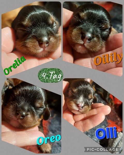 Olli & Oilily am 7 Tag und Orelia am frühen Morgen des 8. Tages. Alles Bestens. Das wunderschöne Quartett bereitet uns so viel Freude, außer Wiegen und täglich eine frische Decke ist dieser Wurf extrem entspannt.