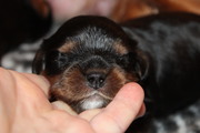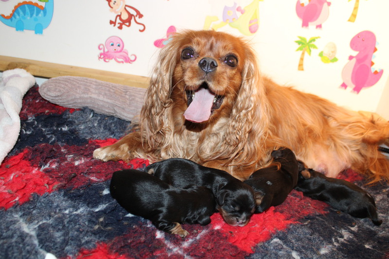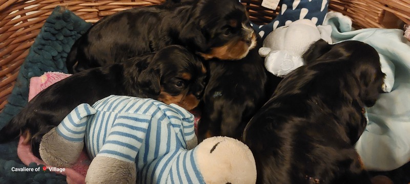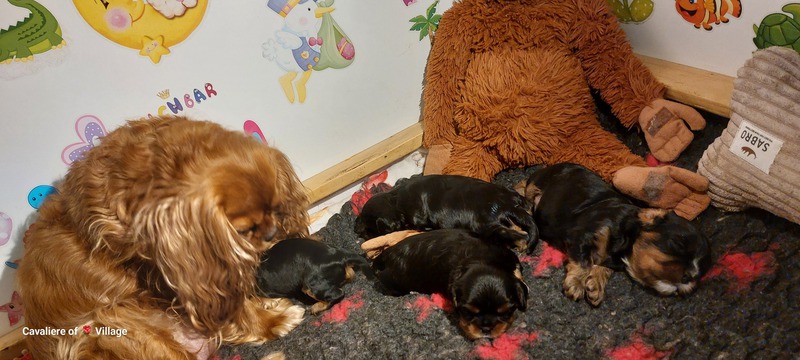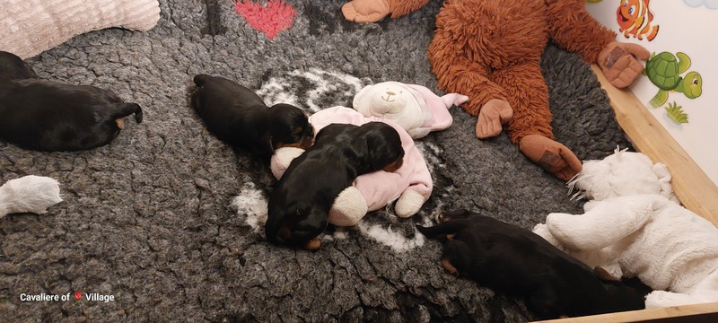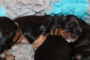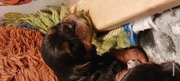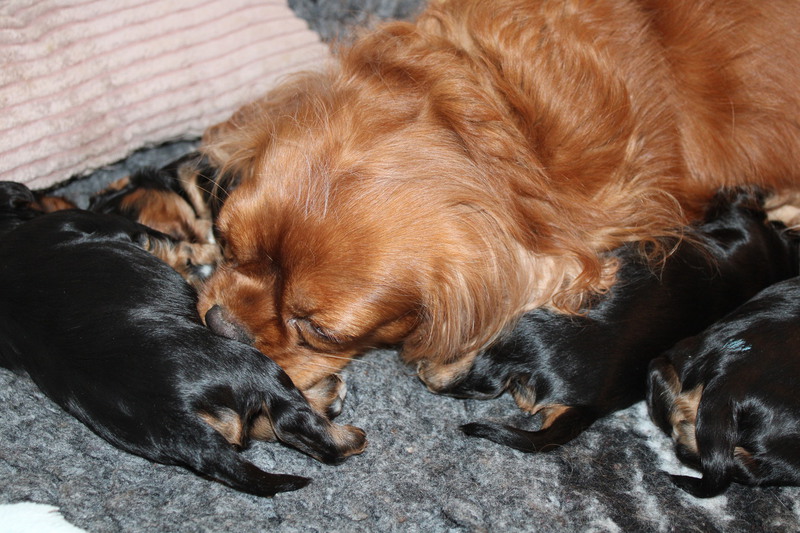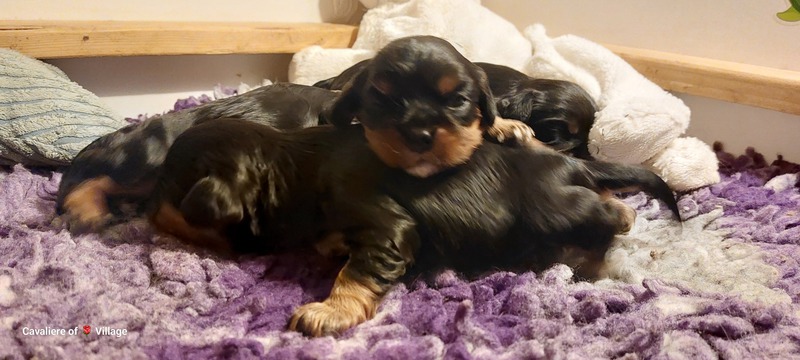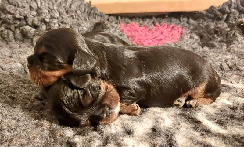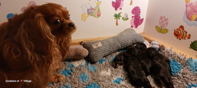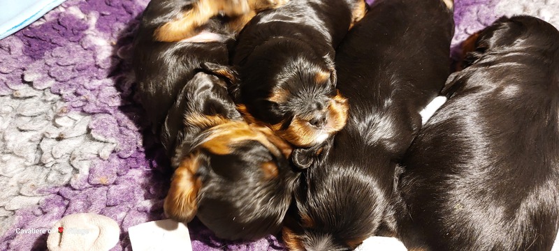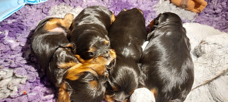 Olli & Oilily am 7 Tag und Orelia am frühen Morgen des 8. Tages. Alles Bestens. Das wunderschöne Quartett bereitet uns so viel Freude, außer Wiegen und täglich eine frische Decke ist dieser Wurf extrem entspannt.