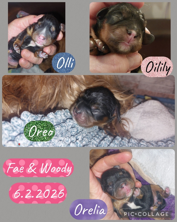 Fae hat am 6.2.26 ihre 4 wunerschönen Welpen bekommen. Die Geburt war sehr lange, aber alles ist gut verlaufen. Fae hat alles toll gemeistert.