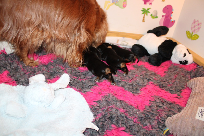 Die Mädels haben fast 700g und die Jungs fast 900g.Tolle Gewichte und prächtige Welpen.