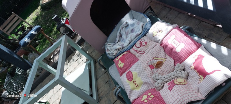 Die Terrasse und der kl.Garten haben sie erobert, keine Angst haben alle.Toffee hat in meinem Bett kurz geschlafen, da sie nicht im Auslauf bleiben wollte.Die Küche und alle anderen Zimmer in der unteren Etage sind für das Quartett keine Hindernisse. Essen 4 komplette Mahlzeiten Barf/ Reico mit Kräutern.