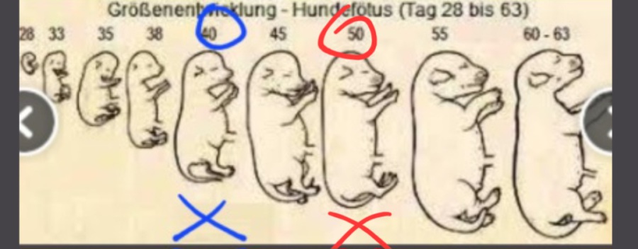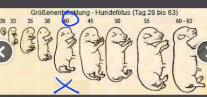 Sie ist fit und spielt noch mit .Peppi liebt ihre extra Mittagsmahlzeit. Wir singen gespannt, wie viele Babys sie tatsächlich bekommt.Die Zunahmen sind unterschiedlich. Bei ihrem.1.Wurf hatte sie 900g/Tag 43, Wurf 2 1200g/Tag 43, bei jedesmal 4 Welpen.Bei , Nach Ultraschall sollen.mehr als 4 im Bauch sein.