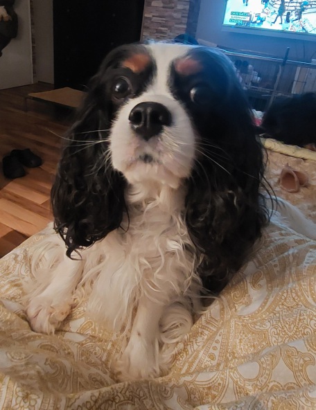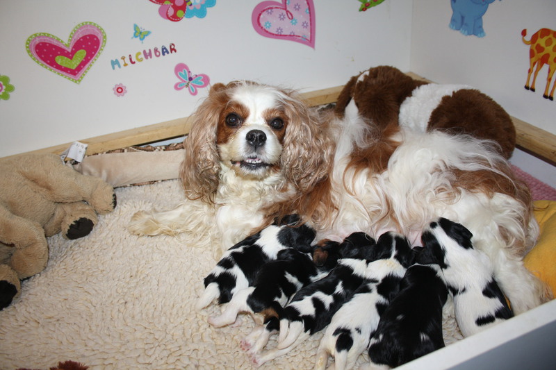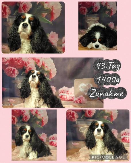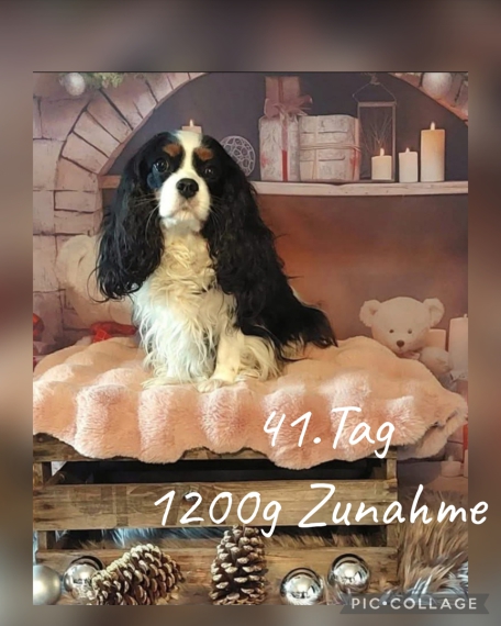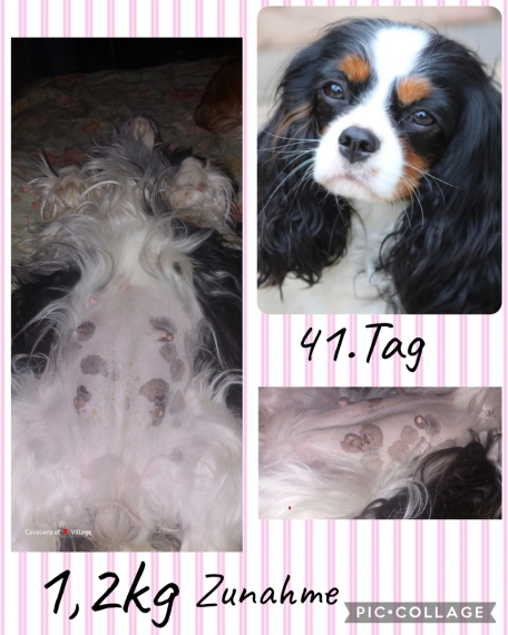 Das Bild habe ich gerade fotografiert. Eine sehr schöne Cavalierhündin,top ❤️ usw. Ihr Bauch ist schon sehr rund ,bis heute hat sie 540g zugenommen.