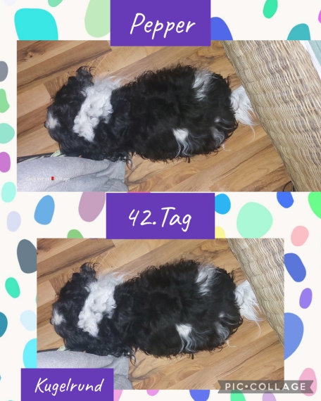 Ein aufregendes Wochenende neigt sich zu Ende.Die kleinen M-chen hatten Besuch.Pepper hatte alles toll gemeistert. Sie nimmt sehr gut weiter zu.Welpenbewegungen sind zu fühlen, Pepper mag es nicht immer , daß man ihren Bauch anfasst.