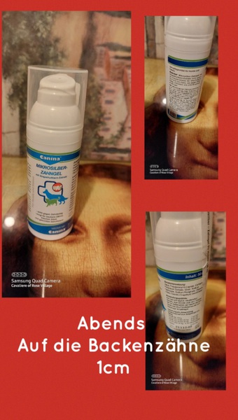 Zähne putzen mehrmals die Woche und Canina Microsilber ppasteauf die Zähne verteilen Abends vor dem Schlafen