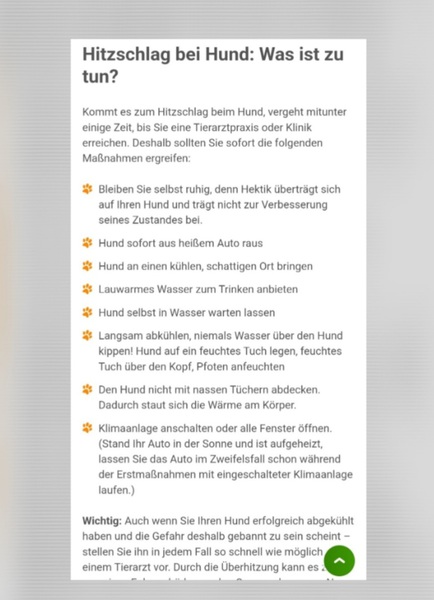 -Bei Hitze ab 25C gassiegänge vermeiden ,oder im kühlen Wald.