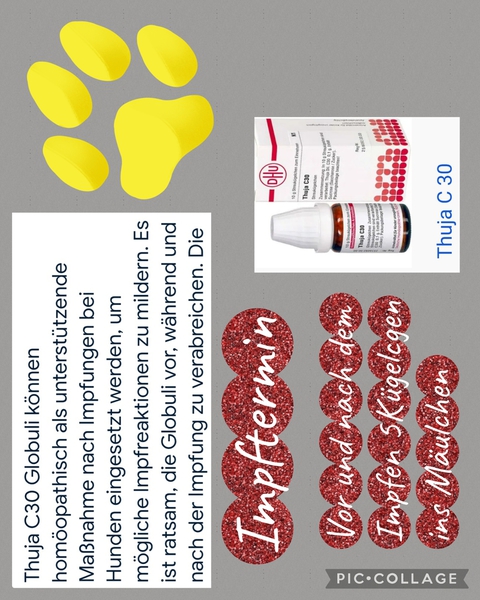 Thuja C30 vor der Impfung und danach, auch noch mal,wenn ihr Liebling Probleme hat.