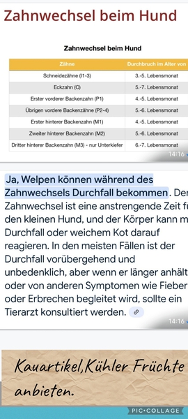 Soll während des Zahnwechsels und auch später etwas Hartes für die Zähne her, dann geben Sie ihm Hundekuchen, damit gibt es keine Schwierigkeiten,